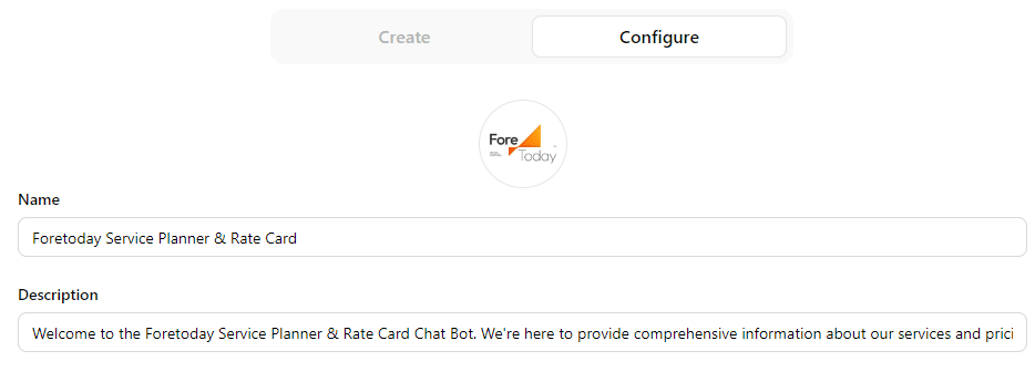 ชื่อและบทบาท (Name & Description): เรามาเริ่มกันด้วยการสร้างตัวตนให้กับ My GPT ของเราด้วยการตั้งชื่อ ใช้รูปโปรไฟล์ที่เป็นเอกลักษณ์ กำหนดข้อความต้อนรับที่เฉพาะเจาะจง และกำหนดคำเริ่มต้นสำหรับคำสั่งต่างๆ เพื่อแสดงถึงลักษณะพฤติกรรมของมัน การปรับแต่งเหล่านี้ช่วยให้ GPT ของเรามีลักษณะที่แตกต่างและตรงกับบุคลิกภาพที่ต้องการสื่อสาร
