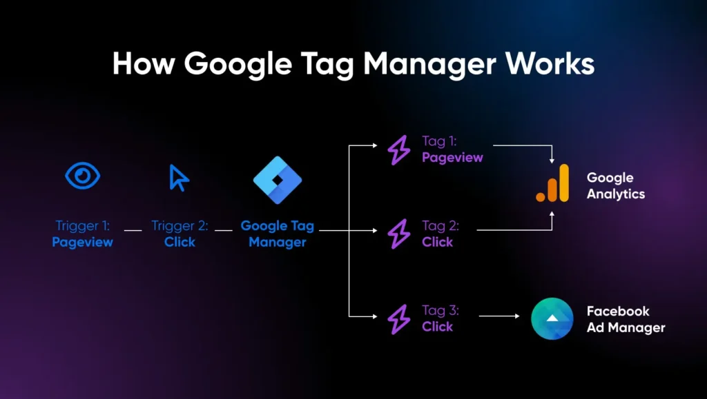 Google Tag Manager ช่วยให้คุณสามารถจัดการแท็กหลายๆ ตัวได้ง่ายและรวดเร็ว โดยคุณสามารถติดตั้งแท็กต่างๆ เช่น Google Analytics, Facebook Pixel และ Google Ads Tracking ได้ในที่เดียวการใช้งาน  Google Tag Manager มีขั้นตอนที่ง่ายมาก คุณต้องติดตั้ง  Google Tag Manager ลงบนเว็บไซต์ของคุณเพียงครั้งเดียว และหลังจากนั้นก็สามารถเพิ่มหรือแก้ไขแท็กได้ตามต้องการ โดยไม่ต้องเข้าไปแก้ไขโค้ดในเว็บไซต์ ซึ่งจะช่วยลดความยุ่งยากและความผิดพลาดที่อาจเกิดขึ้นได้