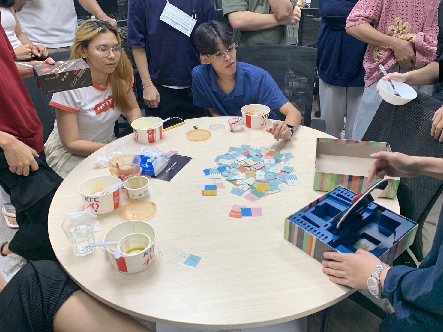 ช่วงเวลาที่ประทับใจมากที่สุด คือ การได้ร่วมกิจกรรมกินเลี้ยงและการเล่นบอร์ดเกมส์กับพี่ ๆ และเพื่อน ๆในออฟฟิศ เดือนละครั้งเราจะมีกิจกรรมกินเลี้ยงร่วมกัน เป็นโอกาสที่ดีในการสร้างความสัมพันธ์และพูดคุยกันในบรรยากาศที่ผ่อนคลาย นอกจากนี้ มีบอร์ดเกมส์หลายเกมส์มากให้เล่นกับเพื่อน ๆ และพี่ ๆ ทำให้เราได้รู้จักกันมากขึ้นและมีช่วงเวลาที่ดีร่วมกัน ฟอ อิ นอ สุด ๆ เลยค่ะ (หมูต่ำอร่อยมากทุกคนต้องลอง)